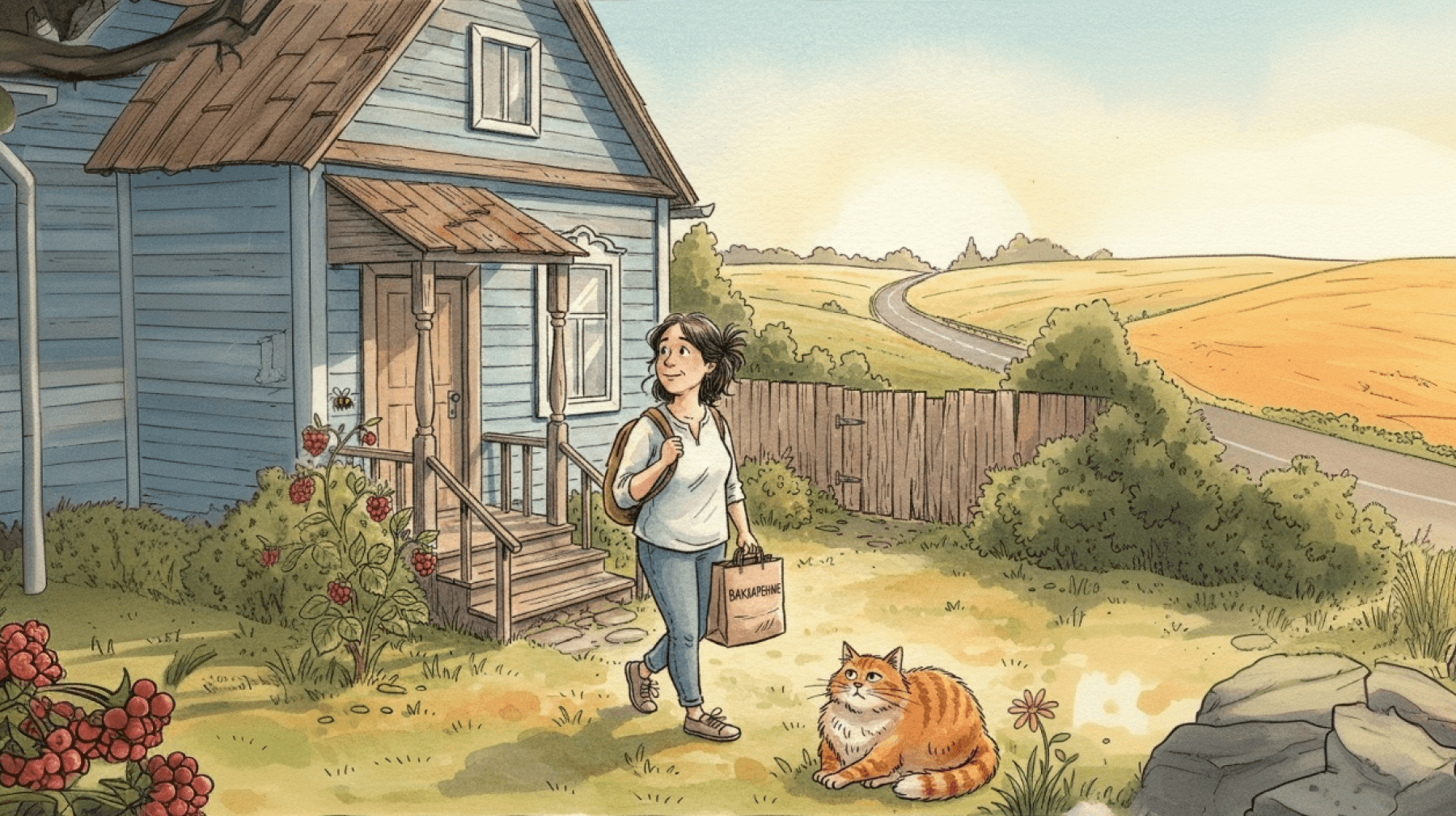 Two hours later, Grandma’s house appeared at the end of the street. It was unassuming, clad in blue siding (the old logs couldn't withstand the weather on their own anymore). The porch was empty; Grandma had already left, and the house greeted me with a silent, frozen emptiness. The only sound was a bumblebee buzzing in the raspberry bushes by the fence.